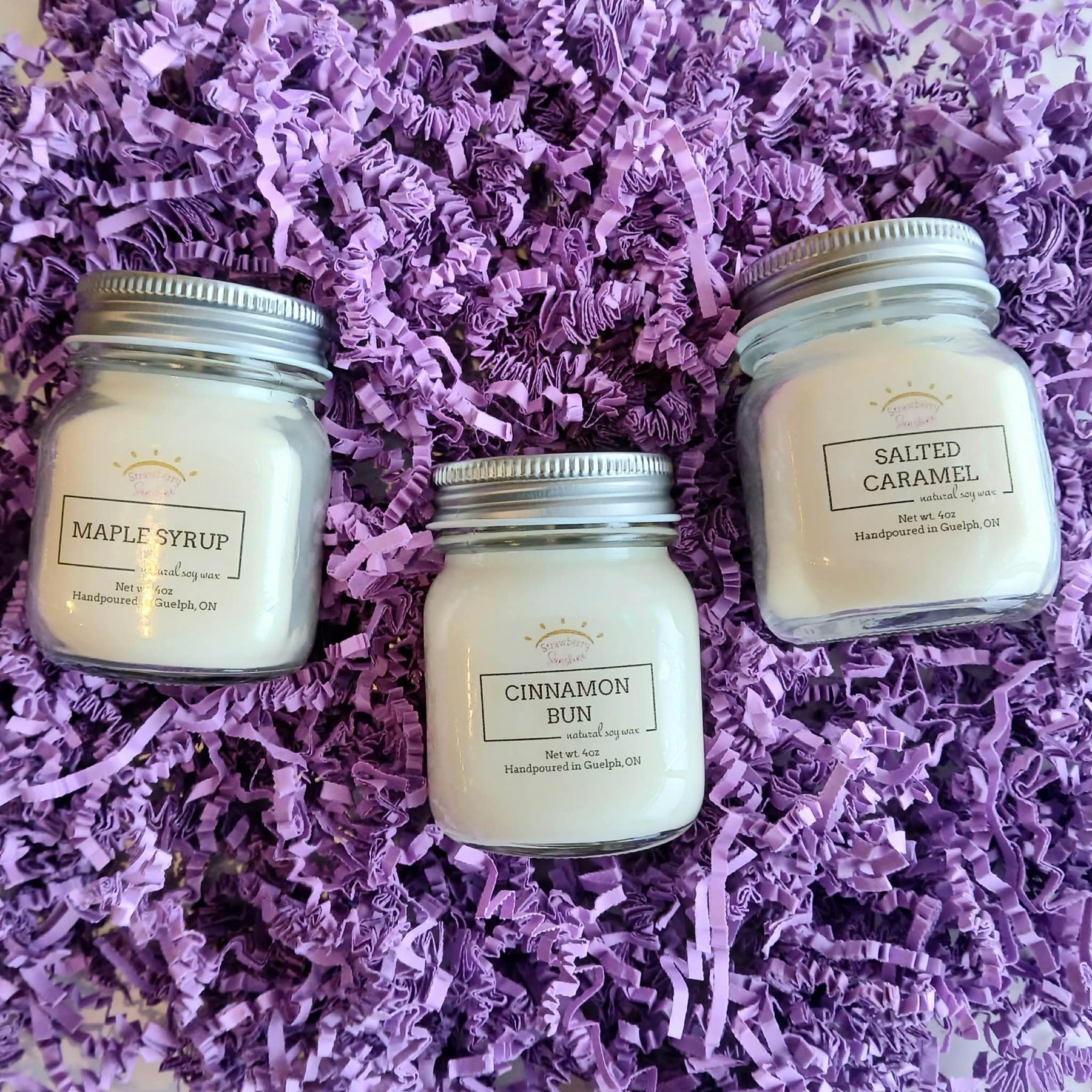 Each 4 oz candle comes with a lid and are hand poured in small batches to ensure quality. They're made with all natural soy wax and are vegan and eco-friendly.